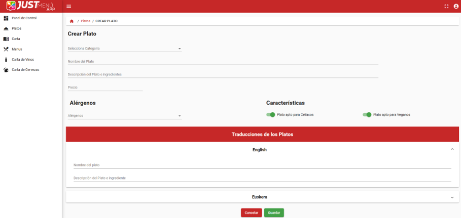 This tool allows restaurants to manage their menus, dishes, and cards in real-time in different languages. Each dish can be created by an administrator with existing allergens and its characteristics (suitable for celiacs, vegans).